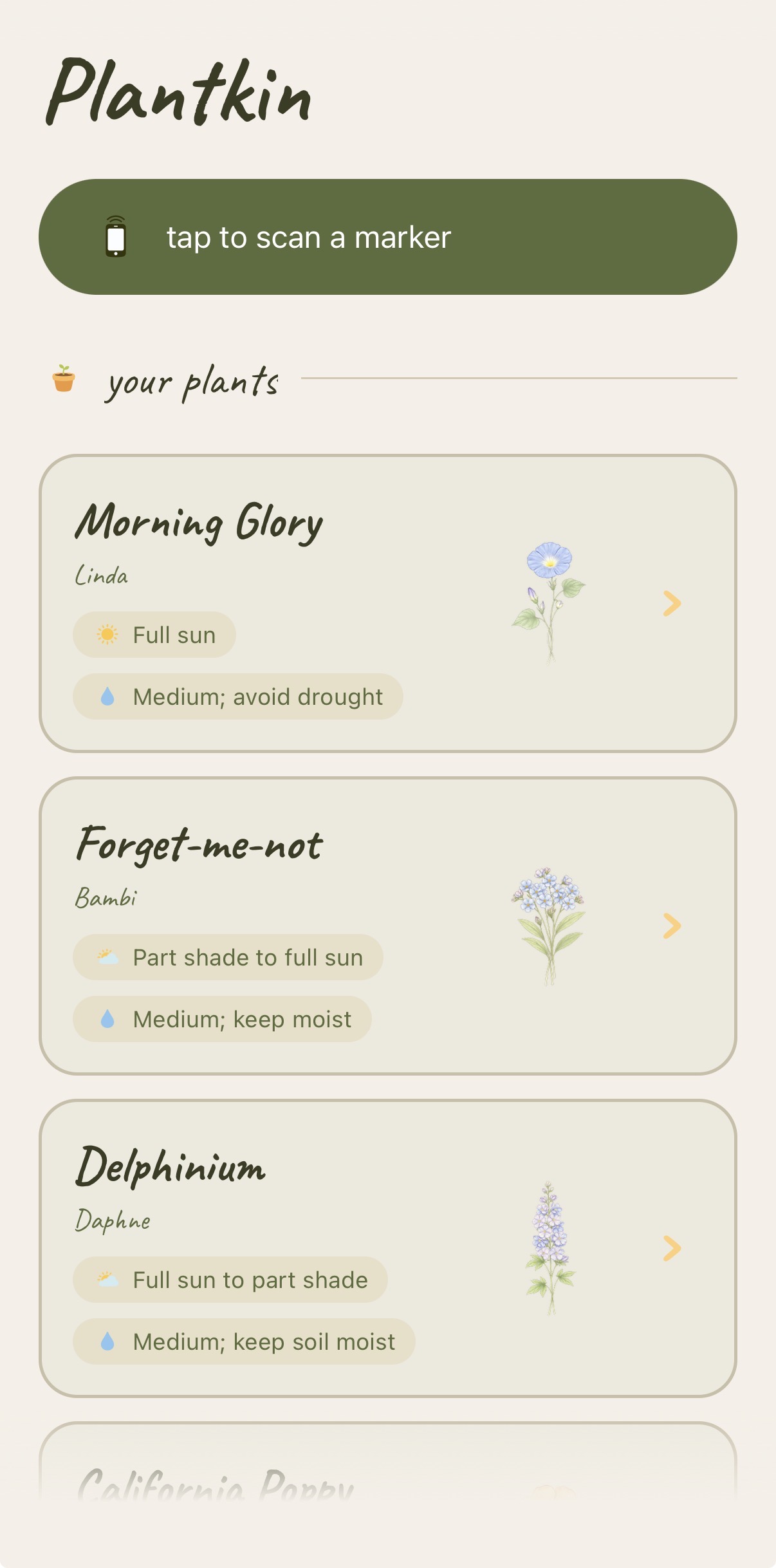 Plantkin is a plant companion app for collectors, home gardeners, and gift-givers. Track your plants, check sunlight and watering needs, see pet toxicity and soil notes, log growth with photos, and keep it all in your hands in the app. Add handmade NFC garden markers when you want an easy way to scan and tell your plants apart.
